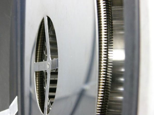 In Systec autoclaves with a chamber volume of more than 65 liters, the air mixing fan is built into the concave door. Therefore, the fan does not take up any useful space in the chamber.