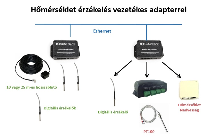 Minden adatgyűjtő egység saját IP-címmel rendelkezik. Egy adatgyűjtő egység 3 érzékelőt tud fogadni a hőmérséklet (digitális vagy PT100), és / vagy a páratartalom szenzort.